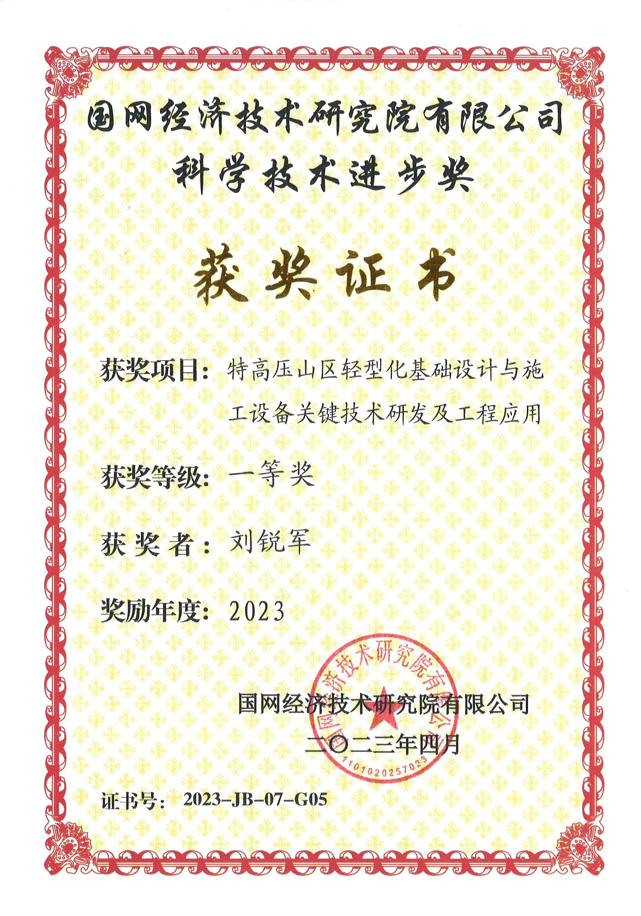 国网经济技术研究院有限公司科学技术进步奖一等奖